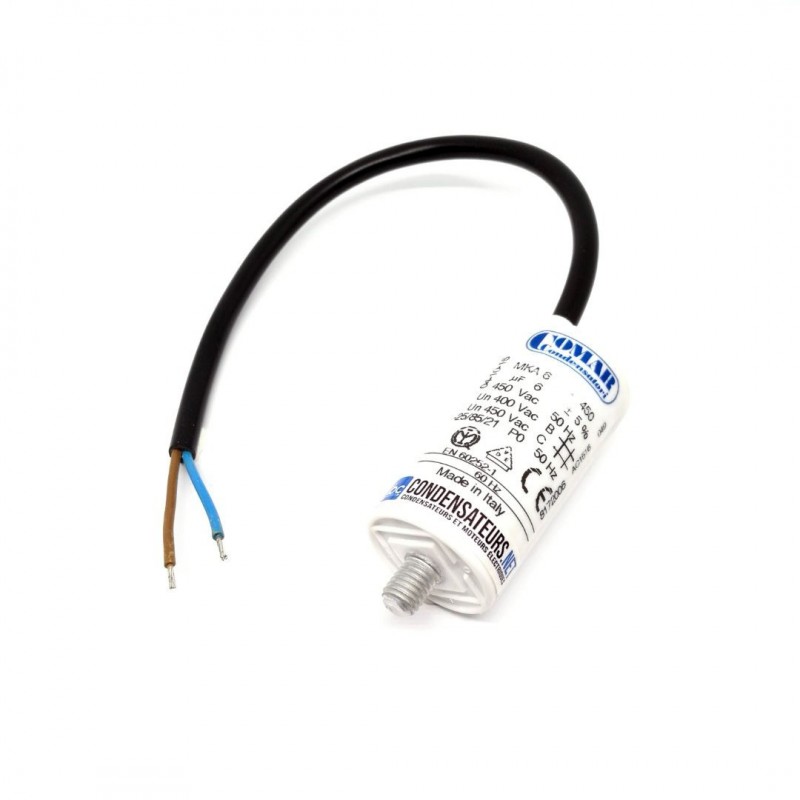 Condensateur permanent 6µF 450V pour démarrage moteur électrique monophasé.