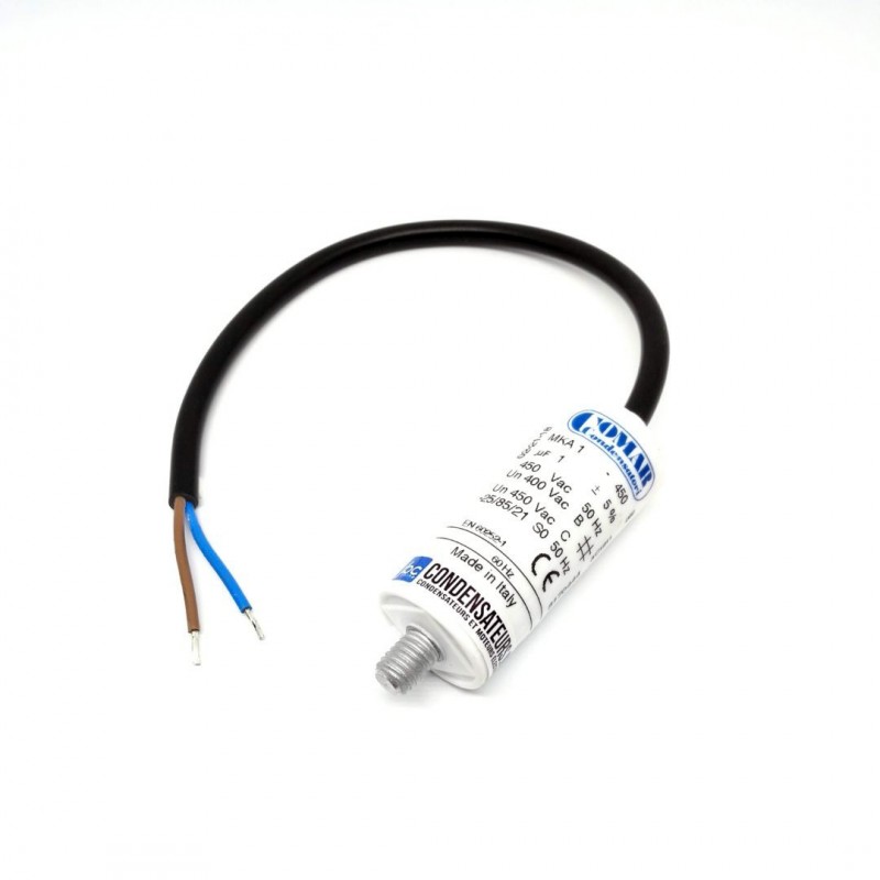 Condensateur permanent 1µF (1MF ou 1 microfarad) 450V pour démarrage moteur électrique 230V monophasé, pompe d'arrosage, pompe de piscine, ventilateur etc...