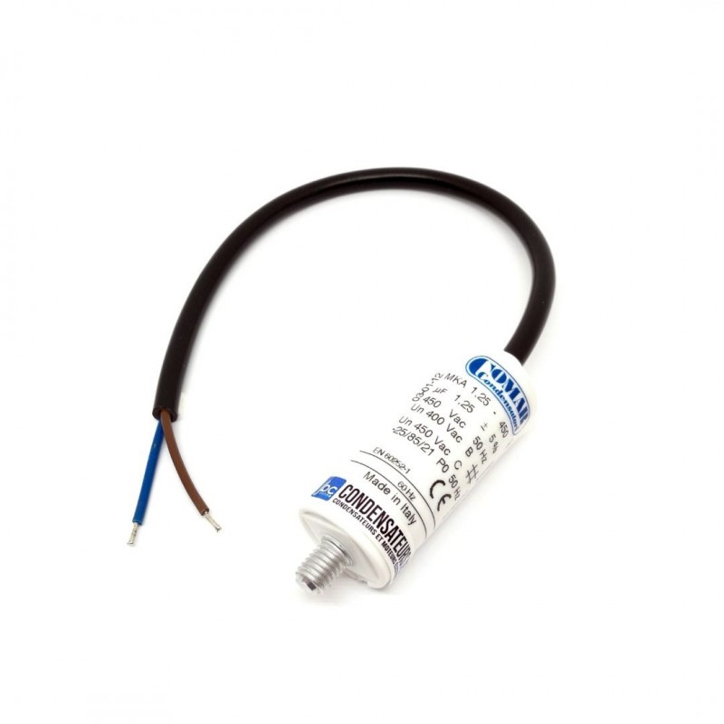 Condensateur permanent 1.25µF (1.25 mf ou 1.25 microfarads) 450V pour démarrage moteur électrique monophasé, pompe d'arrosage, pompe de piscine, ventilateur etc...