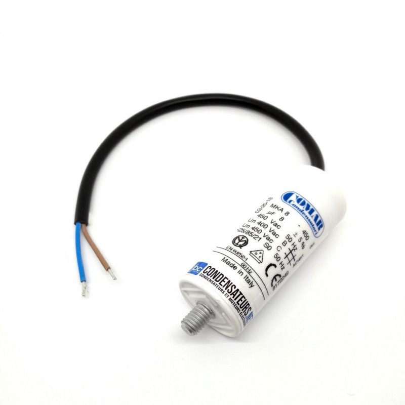Condensateur permanent 8µF (8 mF ou 8 microfarads) 450V pour démarrage moteur électrique monophasé, pompe, ventilateur etc...