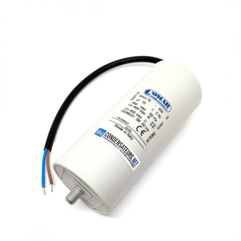 Condensateur permanent 70µF (70mf ou 70 microfarads) 450V pour moteur électrique et pompe.